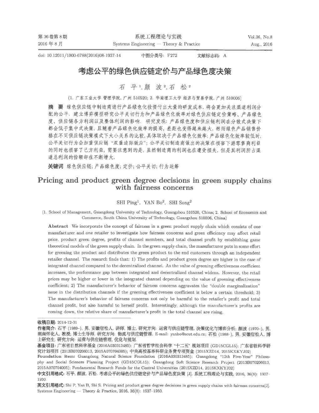 附件下载:考虑公平的绿色供应链定价与产品绿色度决策