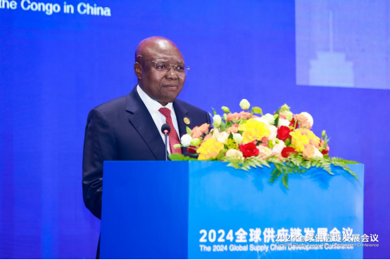上午9时30分许,会议正式拉开帷幕。中非民间商会副会长、中非民间商会物流工作委员会轮值会长、上海格林福德仓储物流集团有限公司董事长许群,重庆市政府口岸和物流办公室二级巡视员陶亮,刚果民主共和国驻华大使弗朗索瓦·巴卢穆埃内,贵州省黔南州人民政府副州长吴学俊,“一带一路”绿色发展国际联盟伙伴关系及发展部主任朱云等嘉宾先后上台致辞。许群董事长表示,当下是一个全球剧变的时代,各行各业的物流交付环节带来了颠覆性的变化和变革,因此格林福德愿意承担连接“一带一路”全球丝路的重要使命,打通高效畅通链接全球的国际通道,展现格林福德集团的情怀。二级巡视员陶亮表示,未来重庆将加快构建现代化集枢运体系,高质量建设重庆枢纽港产业园,打造以西部陆海新通道为引领的出海出境大通道。刚果民主共和国驻华大使弗朗索瓦·巴卢穆埃内表示,本次会议将搭建一个服务平台,密切全球贸易和物流之间的联系。吴学俊州长邀请各位与会嘉宾共同把握黔南州战略机遇,在物流、科技、文旅、现代化工等领域投资兴业,共谋发展。朱云主任强调,中非民间商会作为连接中国与非洲各国企业的重要平台,在推动中非经贸和供应链合作等方面发挥着重要作用。“一带一路”绿色发展国际联盟作为推动共建“一带一路”国家绿色发展的平台,在促进中国与共建国家之间政策交流、技术对接、产业合作等方面开展了许多工作和努力。