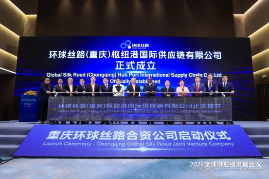 本次会议是在新陆海通道经济发展论坛举办同期召开的平行论坛。与会嘉宾纷纷表达了对建立一个稳定的供应链平台的共识,因此由上海格林福德仓储物流集团有限公司、浙江华立海外实业发展有限公司、重庆江津枢纽港产业园运营集团有限公司、陆海新通道运营有限公司共同合资的环球丝路(重庆)枢纽港国际供应链有限公司在会议上正式启动。今后,该公司将致力于打通全球供应链的前端和终端各个环节,践行一个全球商流和物流密切链接起来的物流产业综合服务平台。