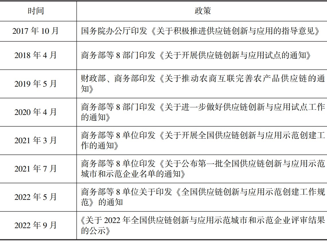 (一)中央层面政策从试点到示范引导供应链创新实现高质量发展